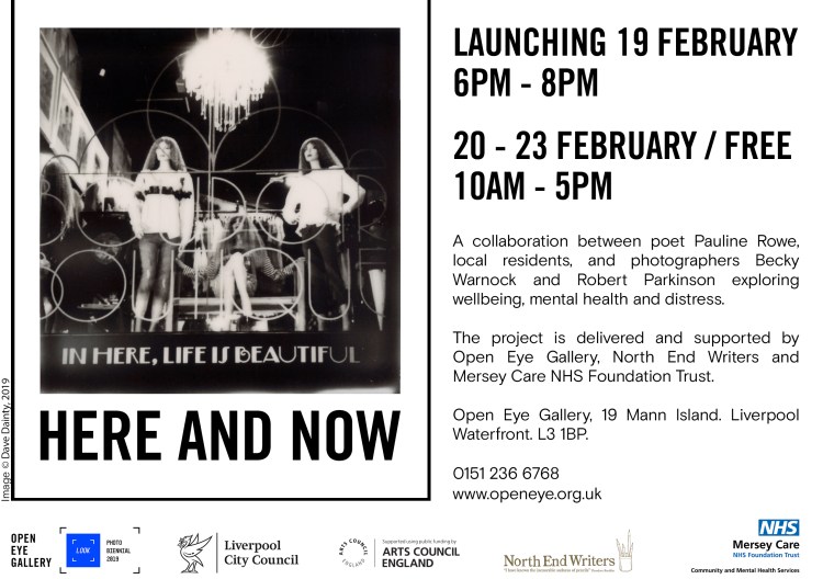 Here & Now project ran from Sept – Dec 2018 at Open Eye Gallery, for service-users of Mersey Care NHS Foundation Trust – including writing and photography, with photographers Robert Parkinson and Becky Warnock. Exhibition shown in Feb 2019.